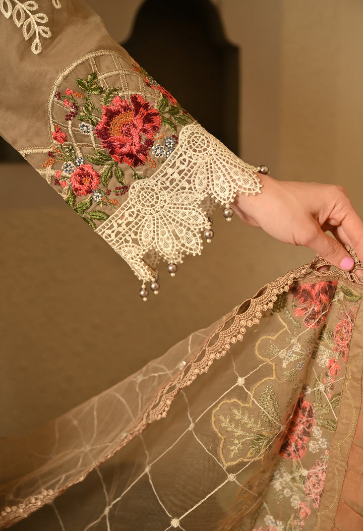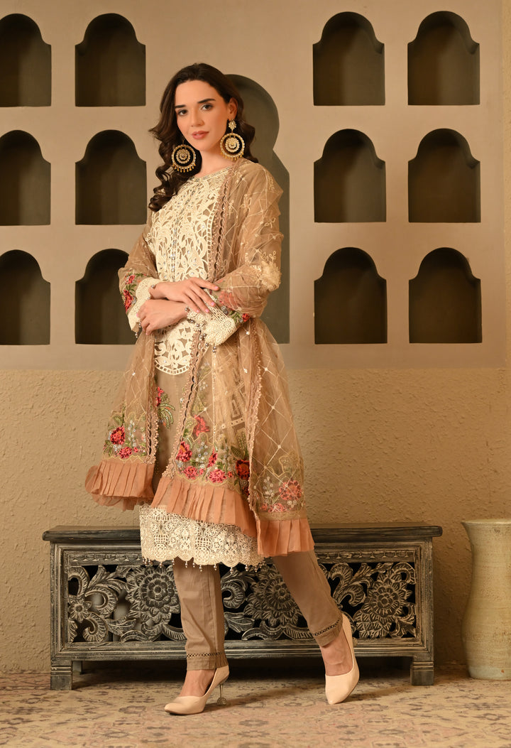 Designer Net Dupatta – A dreamy dupatta with sequin spread, zari lines, and chicken karo lace on all four sides.