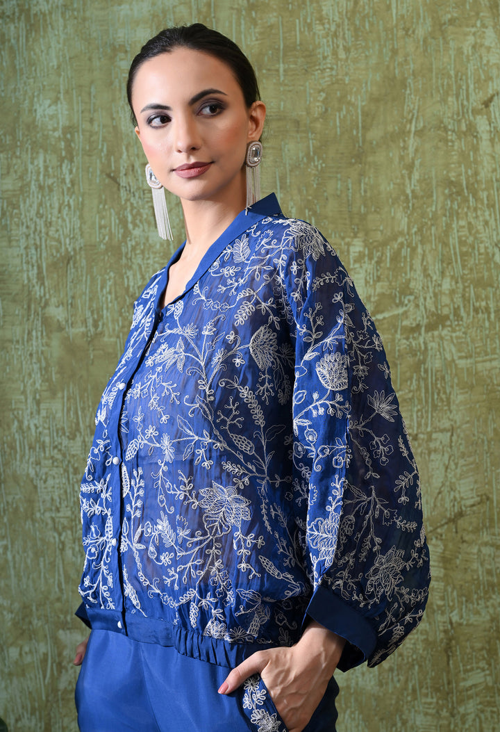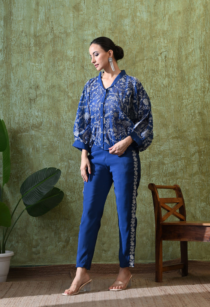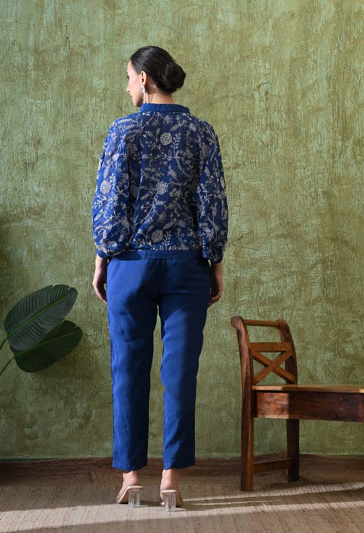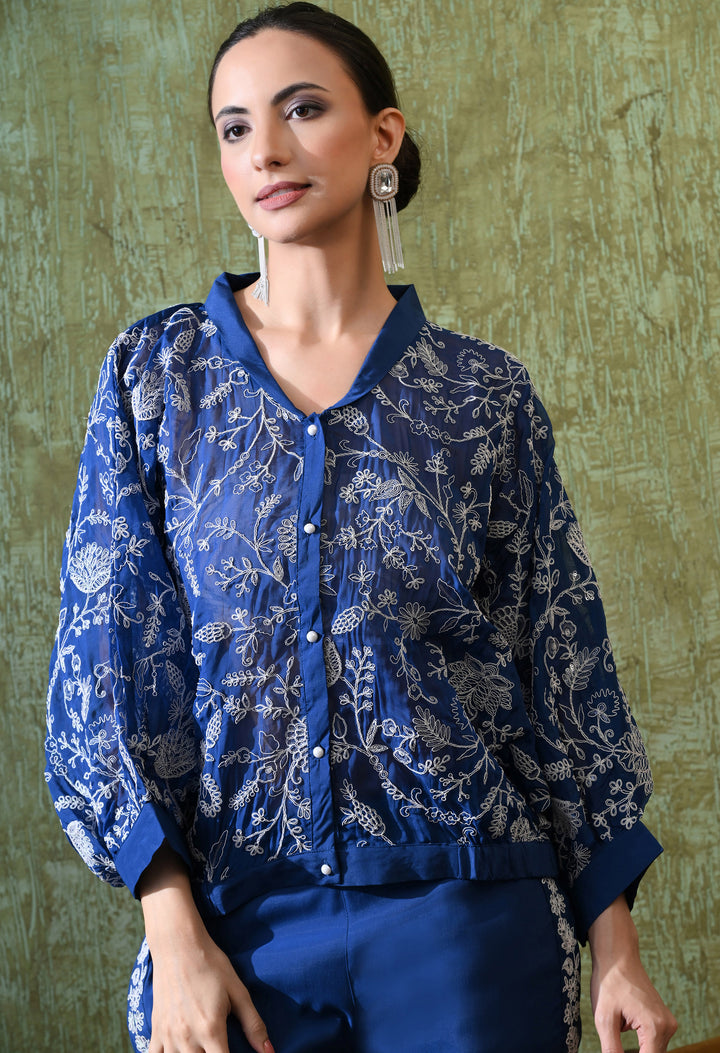 Shine with grace in this Sparkling Blue Pochu Style Outfit. Made from soft organza crepe, it blends comfort with luxury. The beautiful zari, thread, and sequin work make it perfect for festive and special occasions. Its stylish V-neck with pearl button adds charm, while the half sleeves keep it chic and modern. The matching pants with one side pocket and delicate side work make the outfit both trendy and practical. Light and airy without lining, this blue attire is perfect to stand out at weddings, parties, or celebrations. A stunning mix of traditional beauty and modern design!